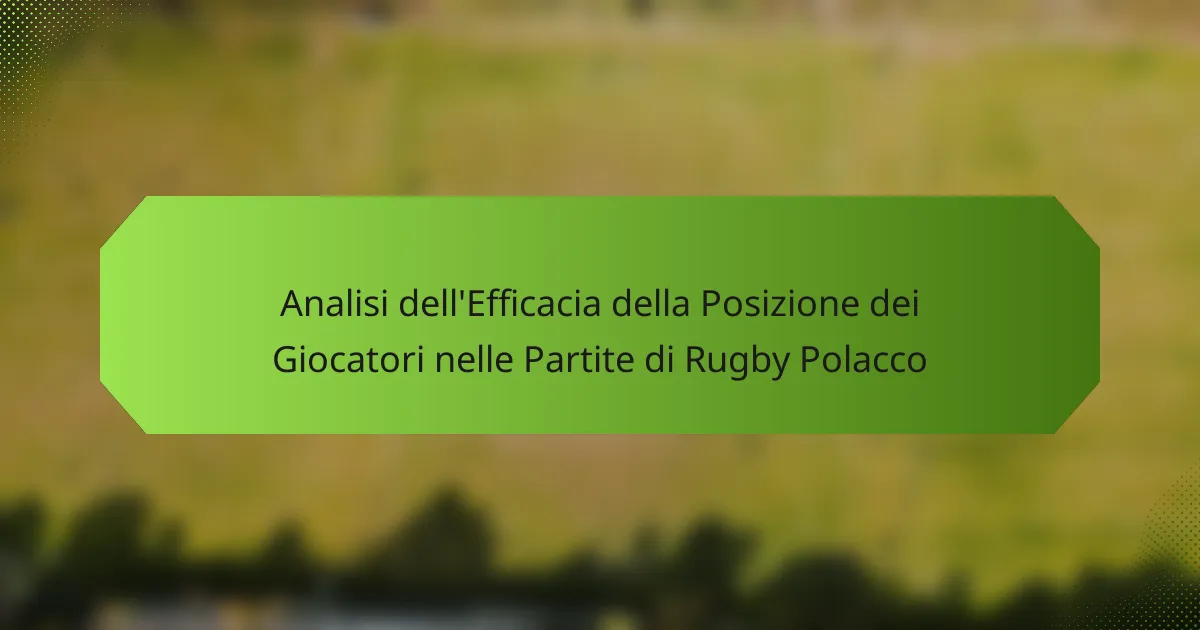 Analizzare l’efficacia delle posizioni dei giocatori nelle partite di rugby polacco è fondamentale per comprendere come i ruoli individuali contribuiscano al successo della squadra. Valutando vari parametri di prestazione, come i contributi ai punti e le azioni difensive, le squadre possono ottimizzare le loro strategie e migliorare le prestazioni complessive. Questa analisi non solo evidenzia l’importanza di ciascuna posizione, ma informa anche le decisioni degli allenatori e le modifiche alle formazioni.