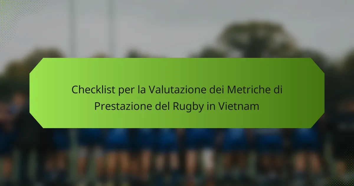 Per implementare efficacemente una checklist di valutazione delle performance, concentrati su metriche chiave che riflettono le performance dei giocatori e della squadra. Questa checklist dovrebbe essere adattata al contesto specifico del rugby in Vietnam, considerando le condizioni locali e le fasi di sviluppo dei giocatori.
