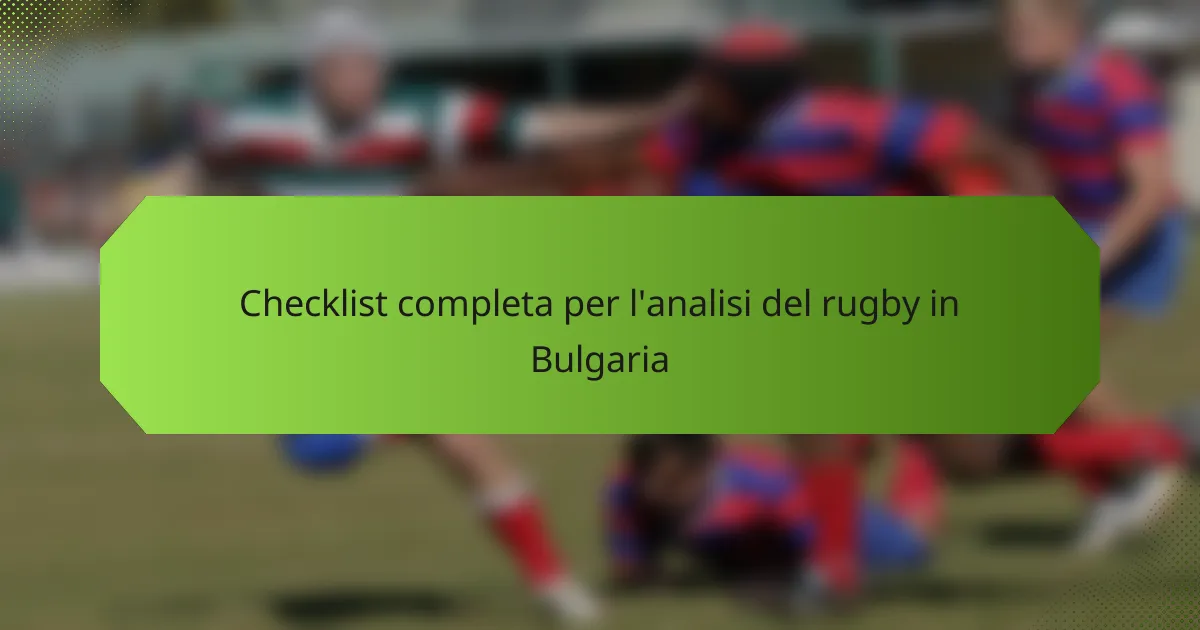 L’analisi del rugby in Bulgaria è essenziale per sfruttare le intuizioni basate sui dati al fine di migliorare le prestazioni della squadra e il processo decisionale strategico. Concentrandosi su metodi di raccolta dati efficaci e strumenti analitici, le squadre possono identificare metriche chiave che informano l’allenamento e lo sviluppo dei giocatori. Questa checklist completa funge da guida per integrare l’analisi nelle pratiche rugbistiche, migliorando infine i risultati sul campo.