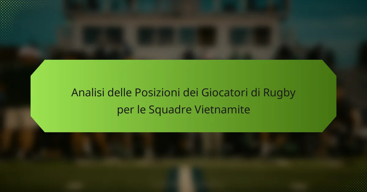 Nel rugby vietnamita, comprendere le posizioni chiave dei giocatori, come i trequarti e i avanti, è essenziale per migliorare la strategia e le prestazioni della squadra. Ogni posizione ha responsabilità uniche che influenzano significativamente sia il gioco offensivo che quello difensivo, rendendo fondamentale per le squadre utilizzare strumenti analitici per valutare l’efficacia dei giocatori e ottimizzare l’esecuzione del gioco.